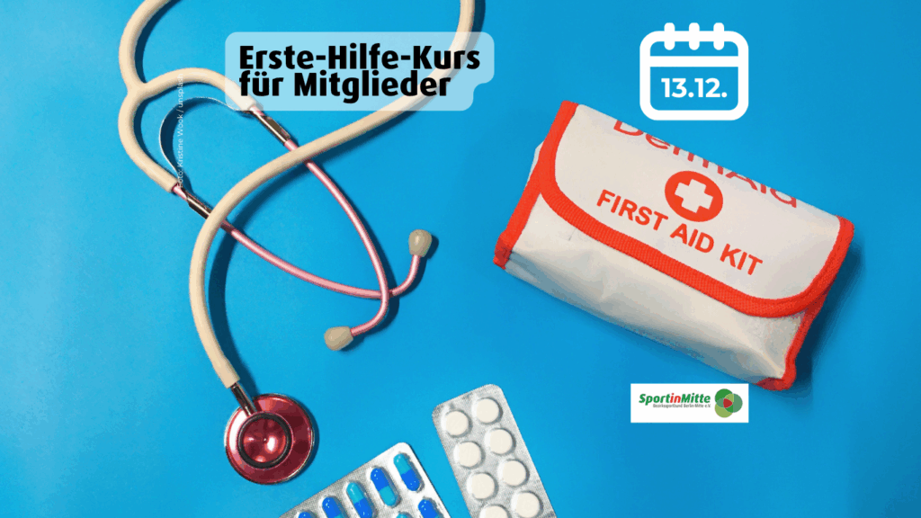 In Zusammenarbeit mit der DLRG Tiergarten organisiert der BSB-Mitte auch in diesem Jahr wieder einen Erste-Hilfe-Kurs für Mitglieder seiner Mitgliedsvereine. Für den 13. Dezember 2025 ab 9 Uhr haben wir den großen Mehrzweckraum (Casino) im Tribünengebäude des Poststadions reserviert, um dort einen Erste-Hilfe-Kurs für Anfänger*innen und Lizenzauffrischer*innen durchzuführen.